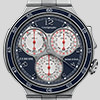 - POUR LE MODÈLE EN PLATINE, UN CADRAN EN ARGENT GUILLOCHÉ DE COULEUR BLEU-MAUVE AVEC DES CHIFFRES EN APPLIQUES EN OR GRIS MAT, 3 COMPTEURS EN ARGENT BLANCHI ET AIGUILLES RHODIÉES MAT.