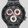 LE MOUVEMENT MÉCANIQUE À REMONTAGE MANUEL DU CENTIGRAPHE AFFICHE LES TEMPS ÉCOULÉS ALLANT DU 100ÈME DE SECONDE À 10 MINUTES, VISIBLES SUR 3 CADRANS, CHACUN AVEC UNE ÉCHELLE DE TEMPS AFFICHÉE EN ROUGE ET NOIR.