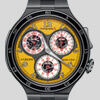 Cadran : jaune, alliage d’Aluminium, index et chiffres appliqués luminescents, compteurs en saphir