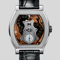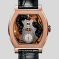 The name «Vagabondage» has been given to this model as time indication is made by a wandering original digital display and its flat turtle-shaped case different from usual round cases very dear to the brand.
