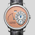The first Octa model displays a two-figure date, the 120-hours power reserve indicator, the hours, minutes and small seconds on F.P. Journe's trademark regulator dial.