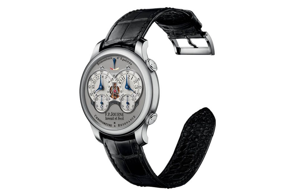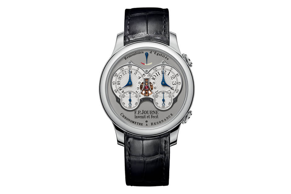 The F.P.Journe Chronomètre à Résonance is the only wristwatch in the world that utilizes the natural physical phenomenon of resonance without any mechanical transmission, previously known as double pendulum or double balance.