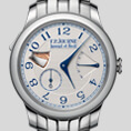 区别于传统三问报时表,Repetition Souveraine三问腕表的小时和分钟共用同一个音锤,所以在无刻钟报时的情况下,会在小时和分钟报时声之间自动插入一个停顿。以经典的双声对刻钟进行报时。一种惯性调节器控制着报时速度,因此消除了传统空气调节器常常引发的背景噪音。