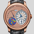 通过UTC腕表 ,F.P JOURNE再度展现其创意和革新精神。这枚腕表拥有一个专利设计,透过机械部件的运作,准确地把地理位置和相关的小时连系,能显示冬令和夏令时间,并以一整个小时为单位,体现当代划分时区的标准。