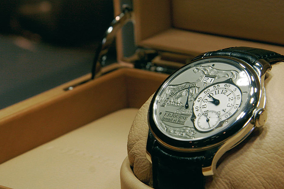 To help the IRP foundation - www.irp.ch - win their fight against paraplegia, legendary actor Alain Delon and master watchmaker François-Paul Journe signed an exceptional watch which joined their passion for art. The timepiece pays homage to the lifetime's work of the Italian director Luchino Visconti - AKA The Cheetah. The dial in white Gold was superbly engraved by Bernard Ditzoff, whose talent portrayed the image in the style of Rembrandt Bugatti, who was the favourite sculptor of the actor.