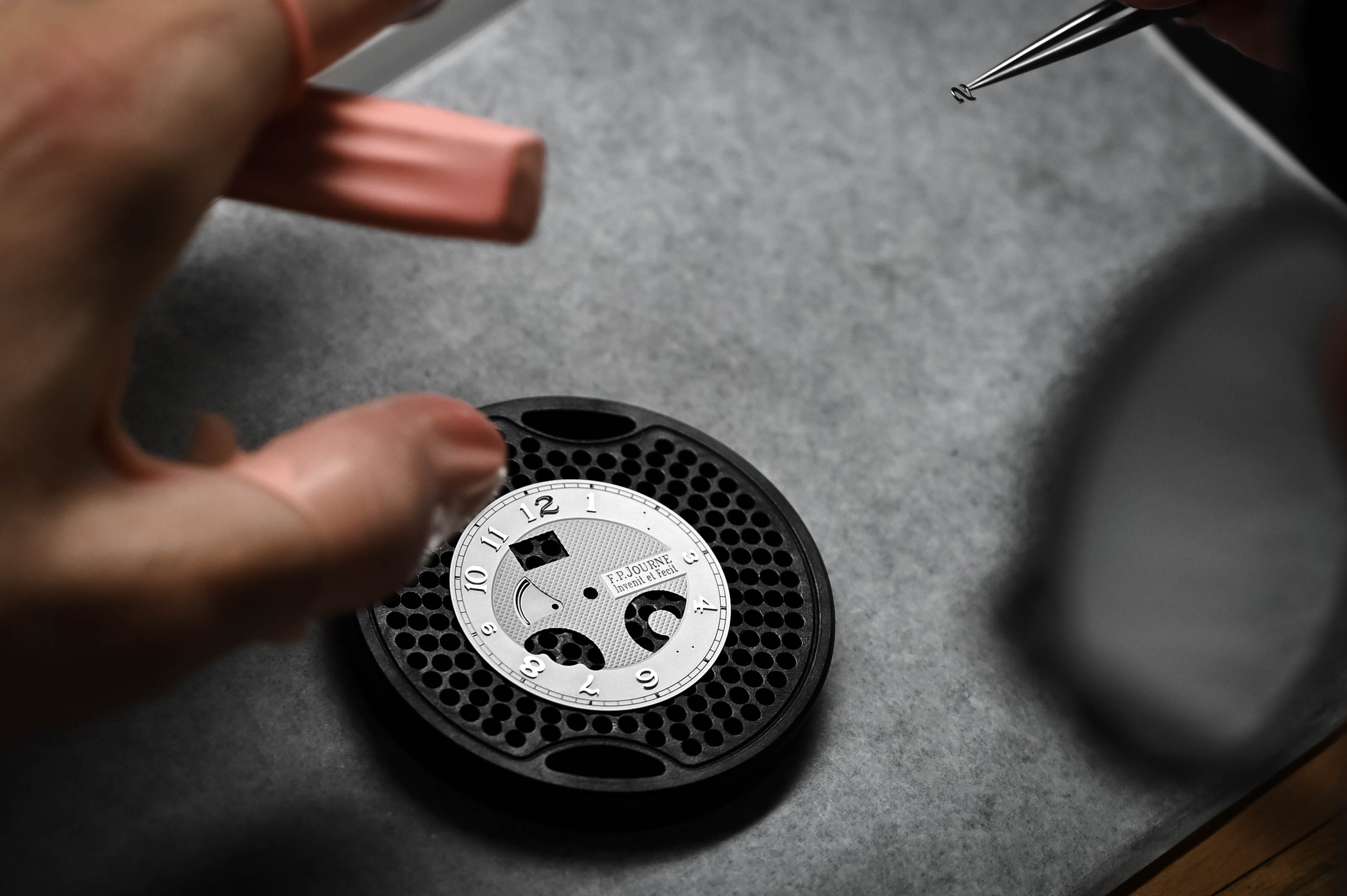 Depuis toujours, F.P.Journe a fait de l'internalisation des compétences une priorité, une caractéristique qui a façonné l'identité de la marque. Cette volonté d’indépendance se matérialise par sa Manufacture située au cœur de Genève qui abrite la fabrication des composants des mouvements ainsi que les ateliers de décoration et d’horlogerie. Il n'est donc pas étonnant que François-Paul Journe ait eu la volonté de posséder ses propres ateliers de fabrication de cadrans et de boîtiers. Cette verticalité témoigne du souhait de contrôler ces éléments essentiels à la création d’une montre et de préserver le savoir-faire lié à l’horlogerie traditionnelle.