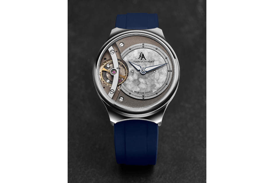 La constellation du Poisson y est gravée, mais cela pourrait être adapté au goût de chacun. Sur la face avant, le cadran est en deux parties: une intérieure en argent avec une finition grattée et un pourtour en acier cerclé. Les index sont des billes en acier pour faire écho aux étoiles.